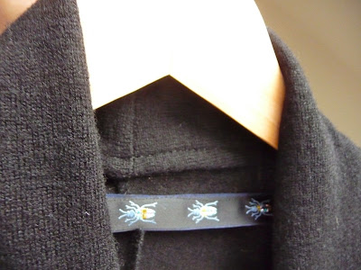 Für die Stabilisierung der Schulternähte und des hinteren Halsausschnittes habe ich noch einmal Bändchen von Kafka / Wuppertal genommen. Die kleinen Käfer passen farblich einigermaßen gut.