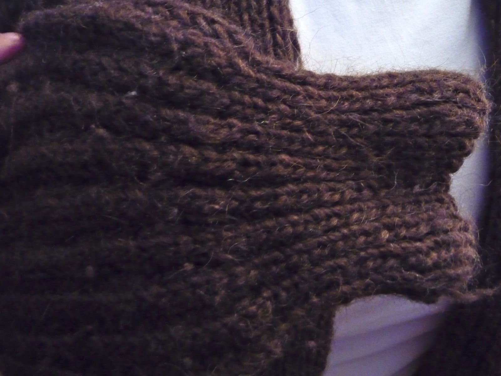 Die Strickjacke hat einen ganz simplen Schnitt. Ich habe sie nach einem Strickmuster gearbeitet aber überhaupt keine Idee mehr woher ich das hatte. Arme, Rücken und die beiden Vorderteile sind Rechtecke und im Patentmuster gestrickt. Das Ärmelbündchen hat die gleiche Maschenzahl ist aber 1rechts 1links und mit ganz dünner Nadel gestrickt. Das war eine ziemliche Würgerei hat sich aber sehr bewährt. Es ist über die vielen Jahre sehr elastisch geblieben. 1rechts 1links in einem Teil gestrickt ist auch die Blende / der Kragen, der später angenäht wird.