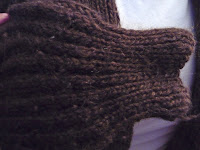 Ich habe meine ganz alte braune Wolljacke angezogen. Gestrickt habe ich sie 1980. Unten gibt es ein Foto mit mir, der braunen  Jacke und meiner Tochter im Strickanzug. Heute kombiniere ich die Jacke mit einem neueren Rock, genäht in diesem Sommer. Zu braunen Strumpfhosen und braunen Schuhen (leider nicht aus der ganz gleichen Farbtonreihe) geht das ganz gut.
