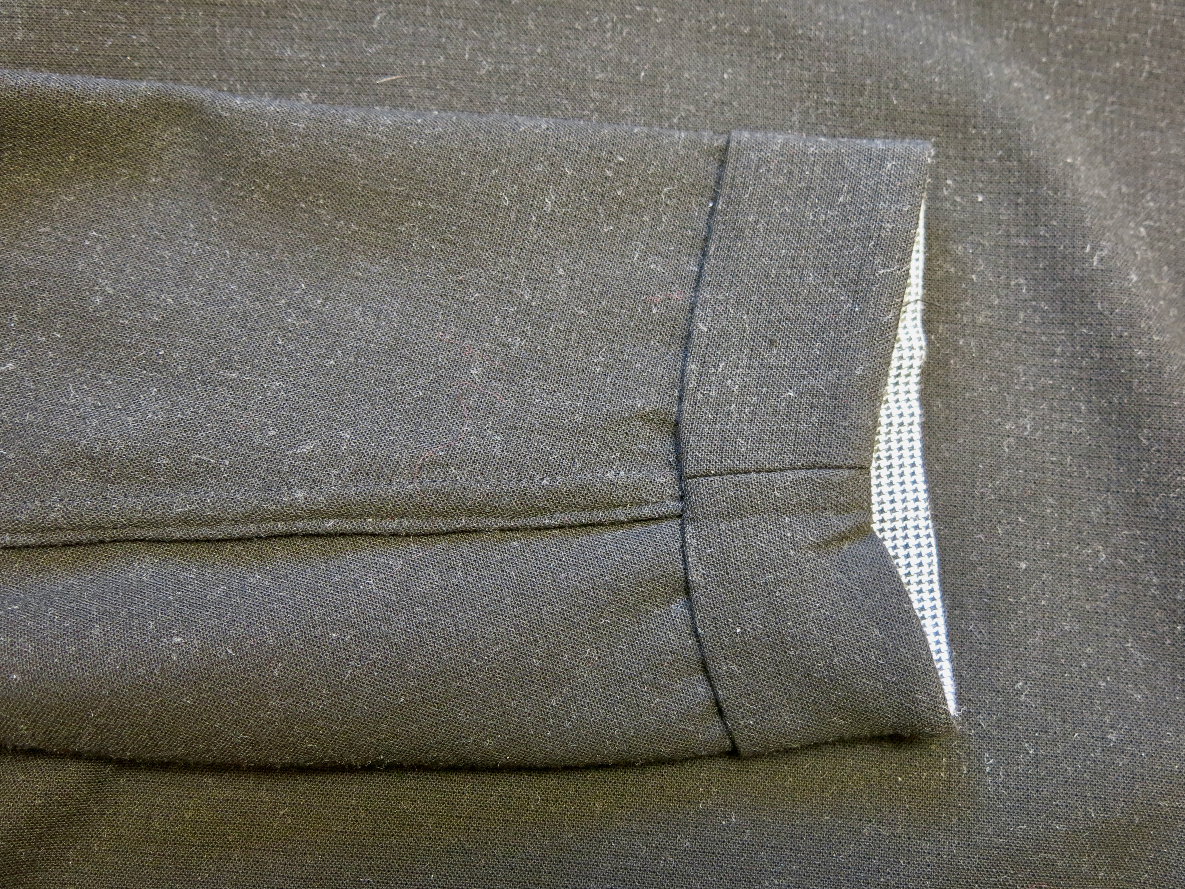 Nicht geplant aber ganz hübsch ist, dass der Kragen und die Ärmel umgeschlagen werden können und dann jeweils ein wenig von dem dann inneren Stoff zeigen.