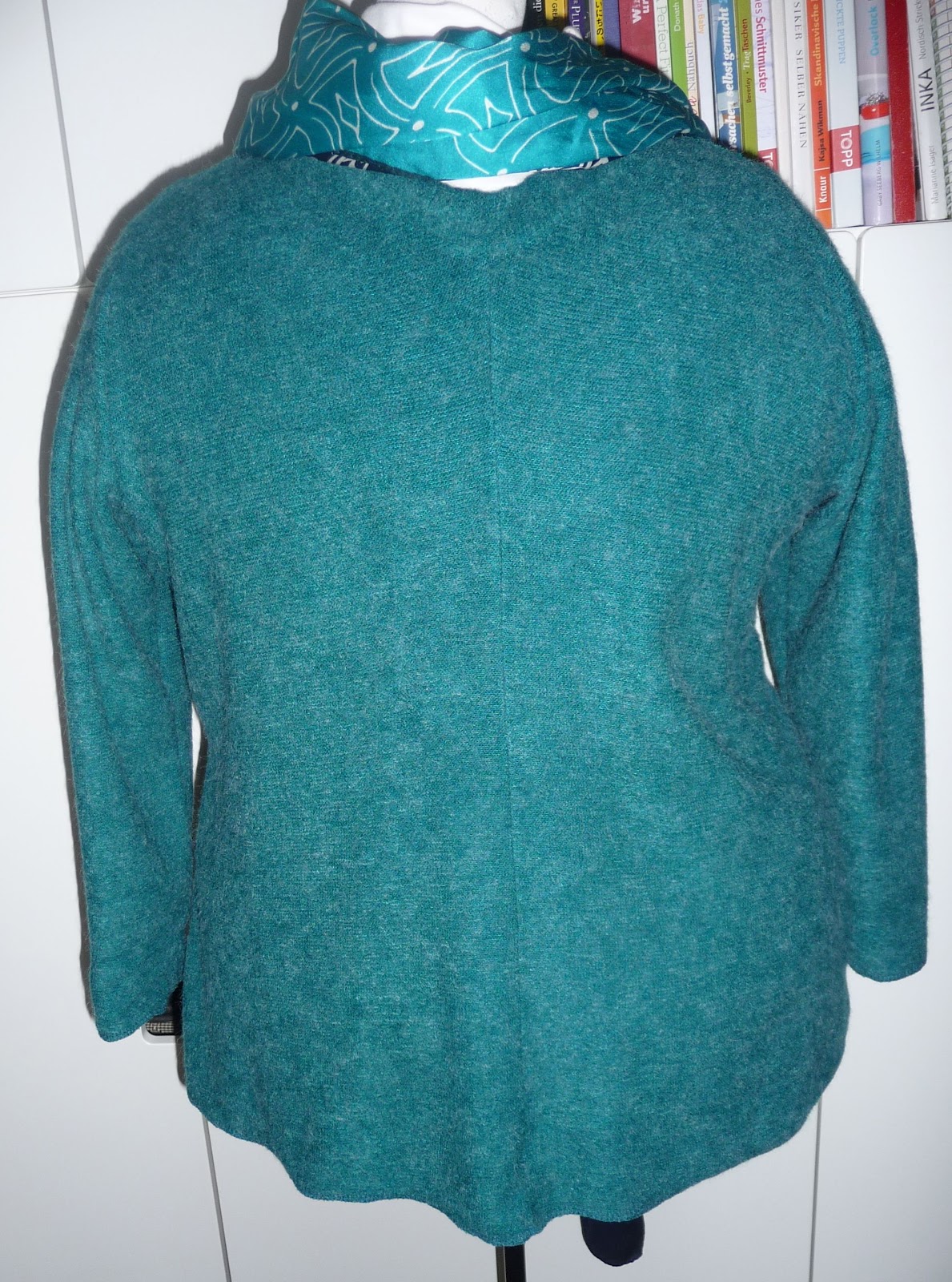 In der Zeitschrift haben mir die Fotos sehr gut gefallen und ich hatte große Lust das Teil sofort zu nähen. Zwischendurch, nach der Sichtung der Schnittmusterteile, hatte ich größte Befürchtungen. Zu weit, zu monströs, zu blöd! Alles Quatsch. Ein wunderbares, etwas unpraktisches Teil.