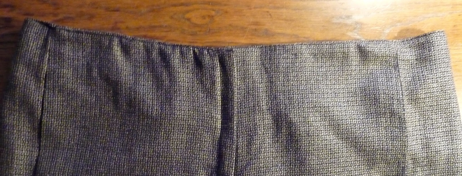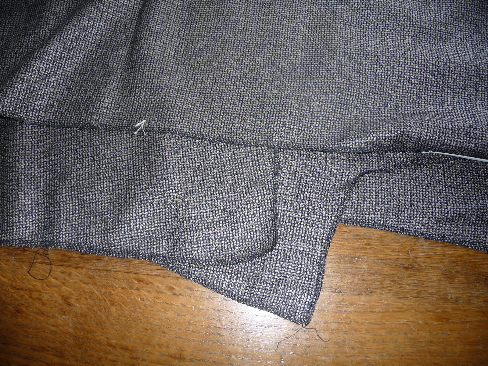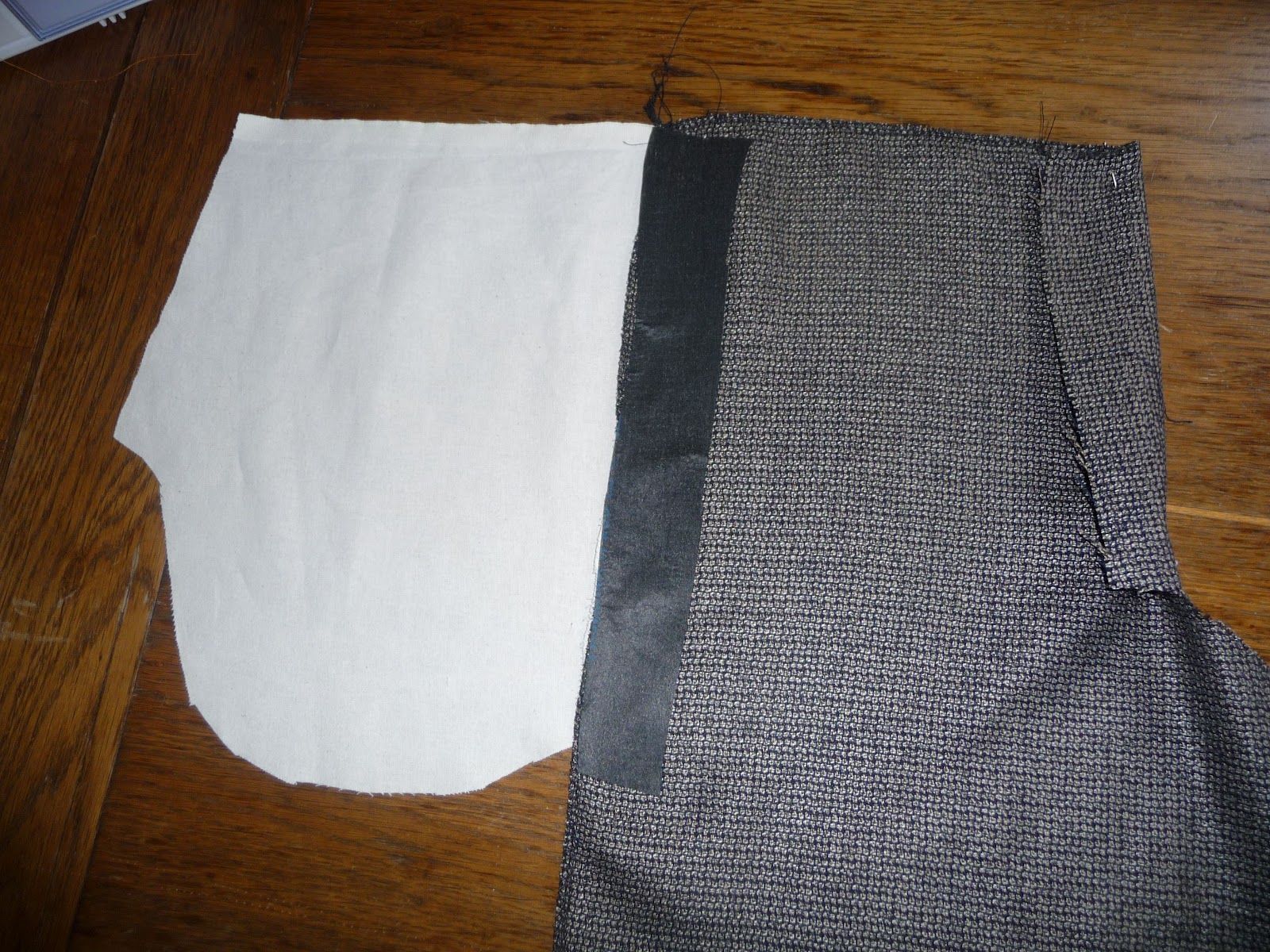 Dann wurde die Nahtzugabe des Vorderteiles (mit Verstärkung bebügelt) abgeschnitten.