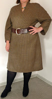 Mir hat der Stil des Kleides gefallen, besonders gut dabei sind der fesche Schlitz mit den Knöpfen im Nacken und auch der Stehkragen.