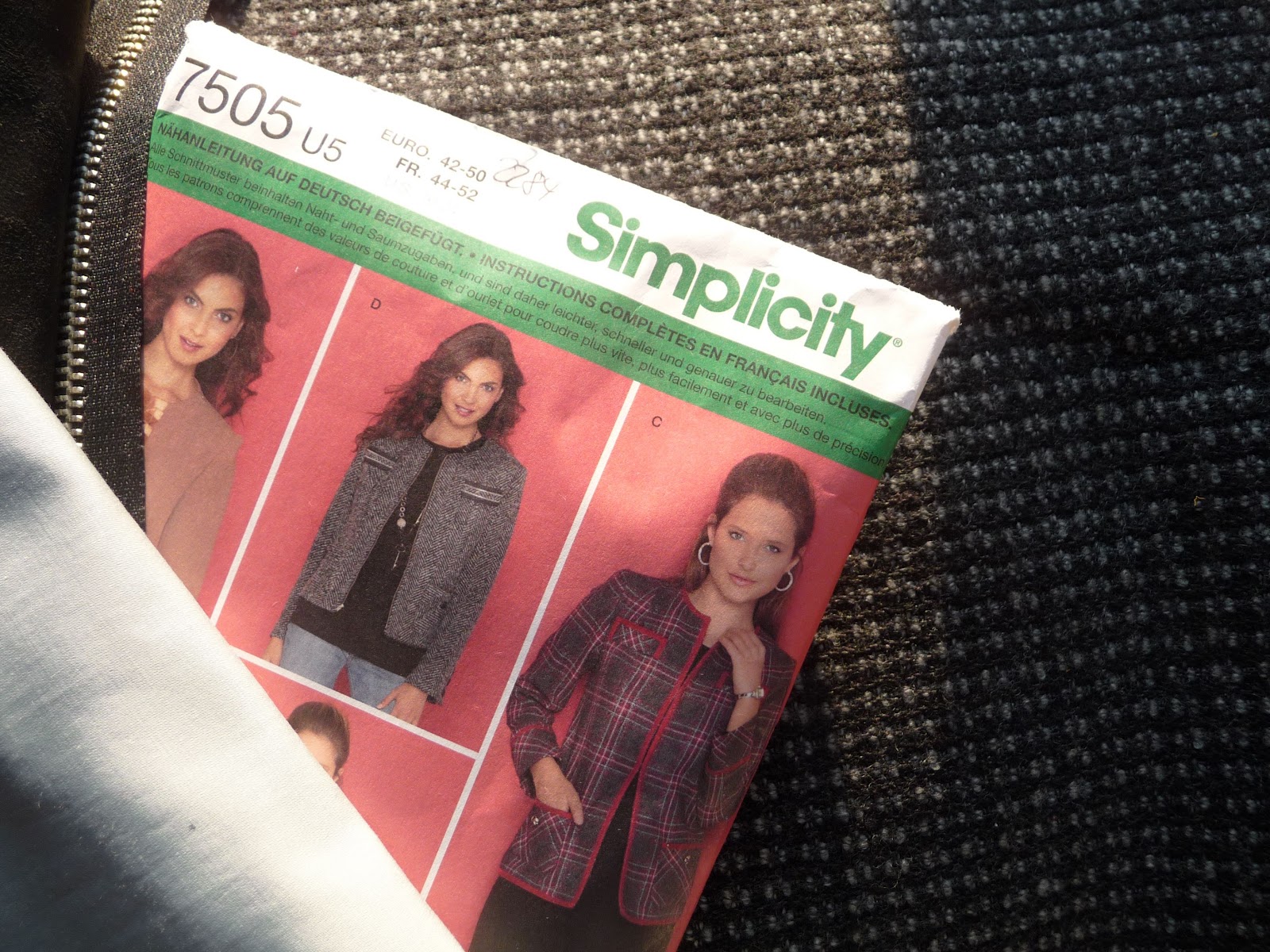 Simplicity 2404 / 7491 ist ein Schnittmuster für ein Shiftkleid mit Prinzessnähten, zwei verschiedenen Ausschnittvarianten (mit Schlitz oder rund) und zwei Armvarianten.Simplicity nummeriert seine Schnitte in Deutsch und Englisch unterschiedlich. Nummer 7491 enthält die deutsche Anleitung. Unter der englischen Nummer kann man im Internet viele verschiedenen Varianten von anderen Näherinnen als Inspiration für das eigene Teil finden.