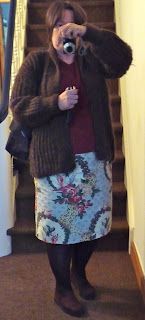 Meine Teilnahme ist ja motiviert davon, dass ich schon lange die Kombination eines Hemdblusenkleides mit einem speziellen schlichten Strickjäckchen arbeiten will. Das Schnittmuster der Jacke (Deco von Kate Davies) ist schon lange in meinem Besitz. Der Schnitt des Kleides ( und auch der Stoff sind ebenfals da.