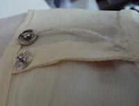 Der nächste Schritt war das Einsetzen des Verlängerungsstreifens. Der Rock wurde im unteren Drittel quer durchgeschnitten und die beiden Seitennähte ca. 5 cm aufgetrennt. Jetzt habe ich auf beiden Seiten die Verlängerungsstreifen oben und unten an den Rock angenäht. Um die neuen Teile optisch etwas abzugrenzen wurde ein schmales Paspelband in die Naht eingelegt.