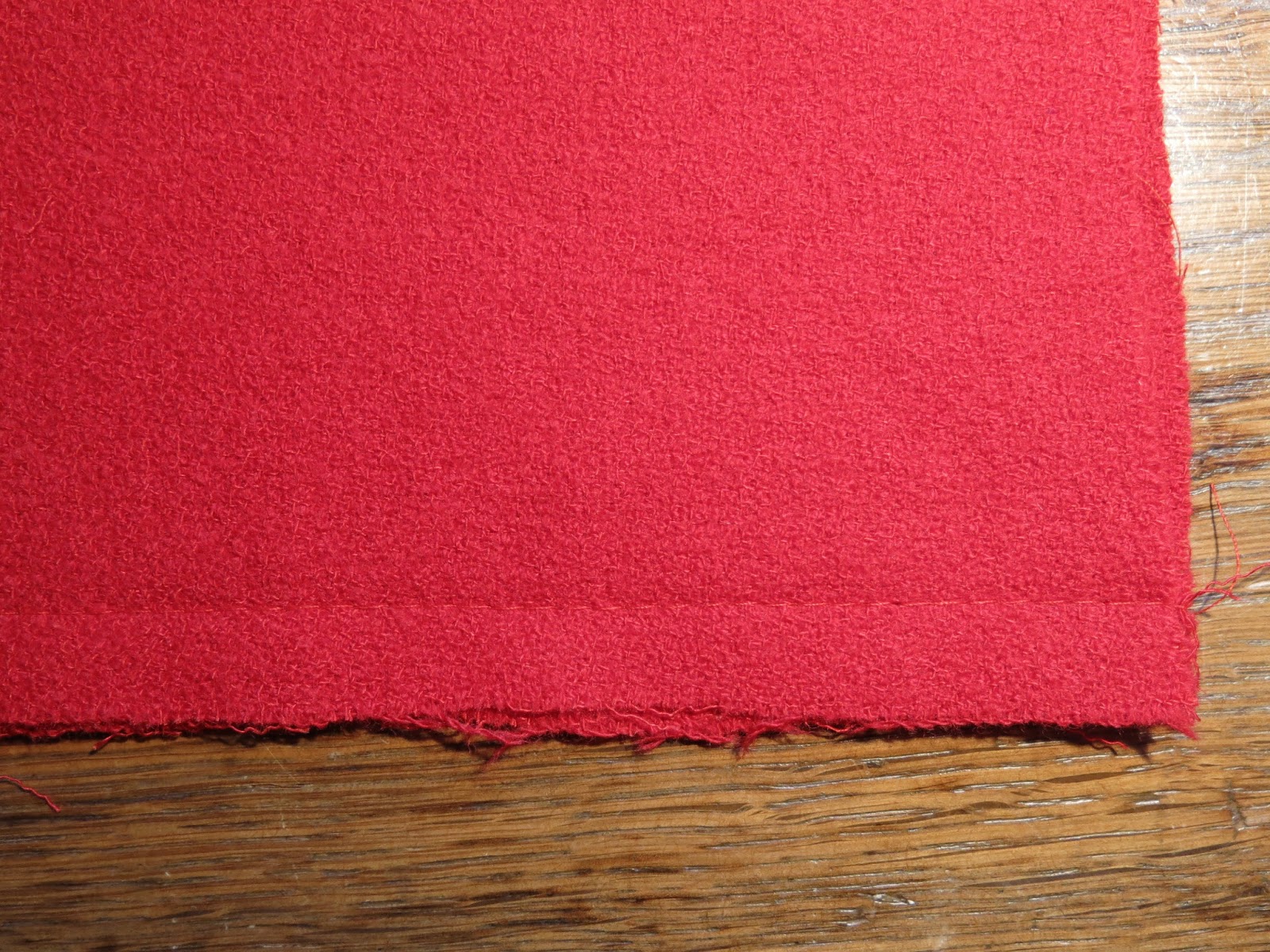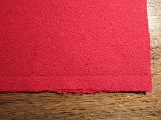 Um das, in diesem Fall unerwünschte, Ausdehnen der Kanten zu verhindern wurden die beiden Längskanten mit einer Nähmaschinennaht gesichert.
