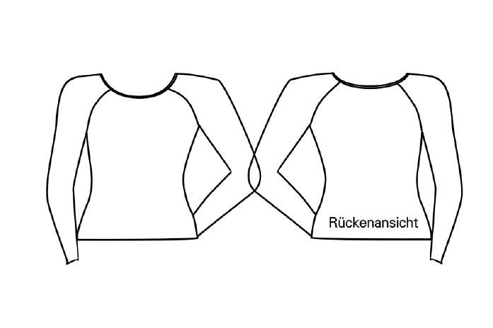 Das Schnittmuster für dieses Raglan T-Shirt ist von Zwischenmass 605006. Die Raglanärmel können halblang oder lang geschnitten sein. Der Auschnitt ist weit und rund. Das Shirt ist körpernah geschnitten.
