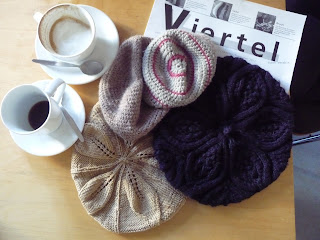 Dabei lagen die Mützen der Teilnehmerinnen Frau Knopf, Fräulein Knopf, Bunte Kleider und von Mema vereint auf dem Tisch. Wir Bloggerinnen haben uns gegenseitig unsere neuen Sachen gezeigt, schwierige Nähprobleme beraten und ein bisschen geschwätzt.