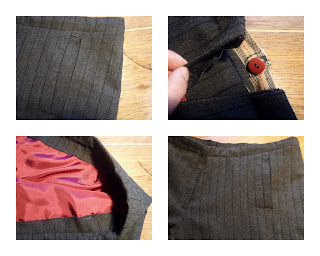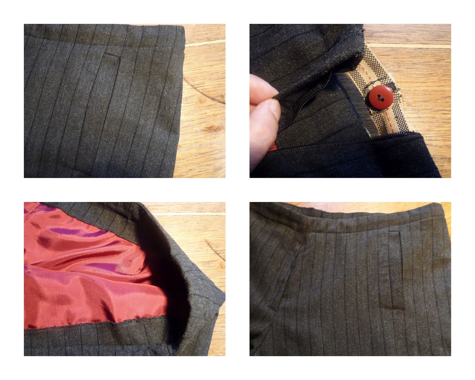 Die Falten am Rocksaum habe ich nicht realisiert und die Taschenfalten sehen bei mir auch etwas anders aus.